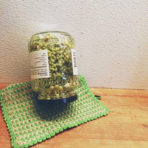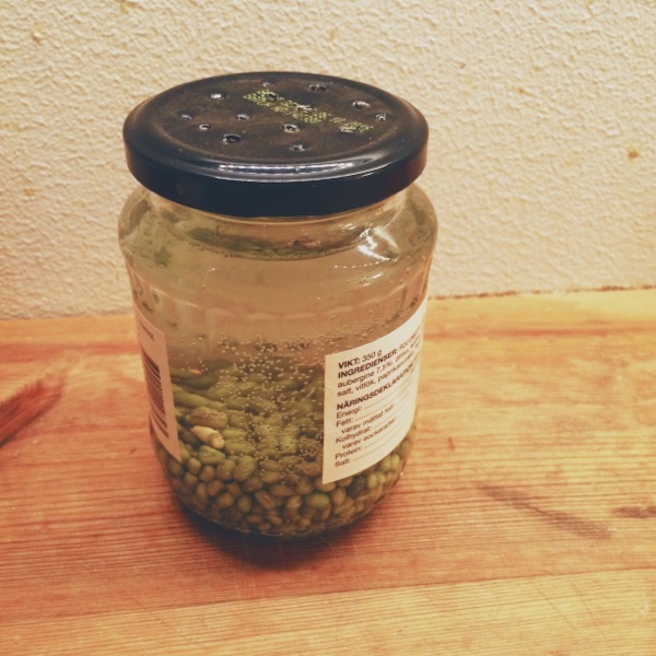 Jag började med att göra min egen groddburk, den är inte så fin och någon gång i framtiden kommer jag att pilla av etiketten. Men den dagen är inte idag.