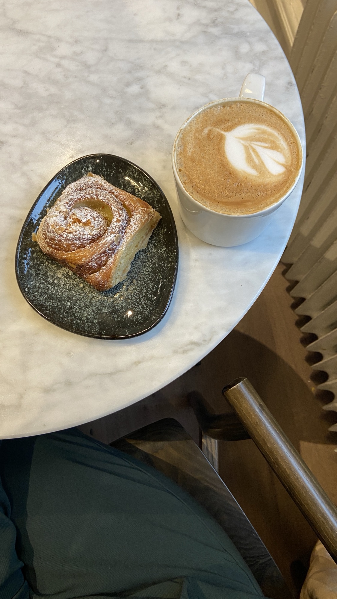 Passade på att fika och läsa min bok innan besöket, och jag fick nog den största cappuccinon jag någonsin fått. Från Gateau på Södra Förstadsgatan. Hann inte ens dricka upp.