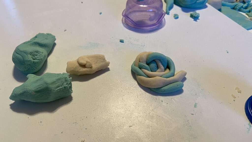 3. Lek och forma! Får man till lite figurer kan man baka dom i mitten av ugnen i 2-4 timmar på 100C tills de är helt torra. Sen kan man måla dom när de svalnat om man vill!